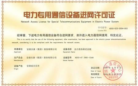 電力專用通訊設(shè)備進(jìn)網(wǎng)許可證(正)