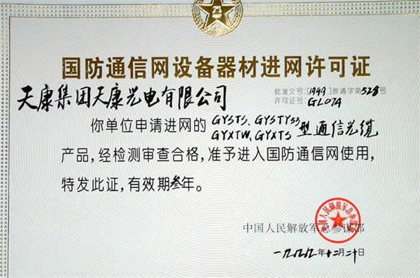 中國人民解放軍總參謀部進(jìn)網(wǎng)許可證(通信光纜)
